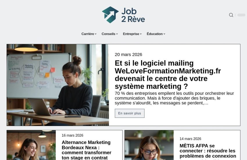 job2reve.fr Site web : https://job2reve.fr Passer à la fiche classe numérique : outils, conseils et bonnes pratiques Effet disruptif : définition, impacts et exemples concrets Diplômes requis pour une carrière en bureau : les qualifications essentielles Leadership idéal : quel style privilégier et pourquoi ?
